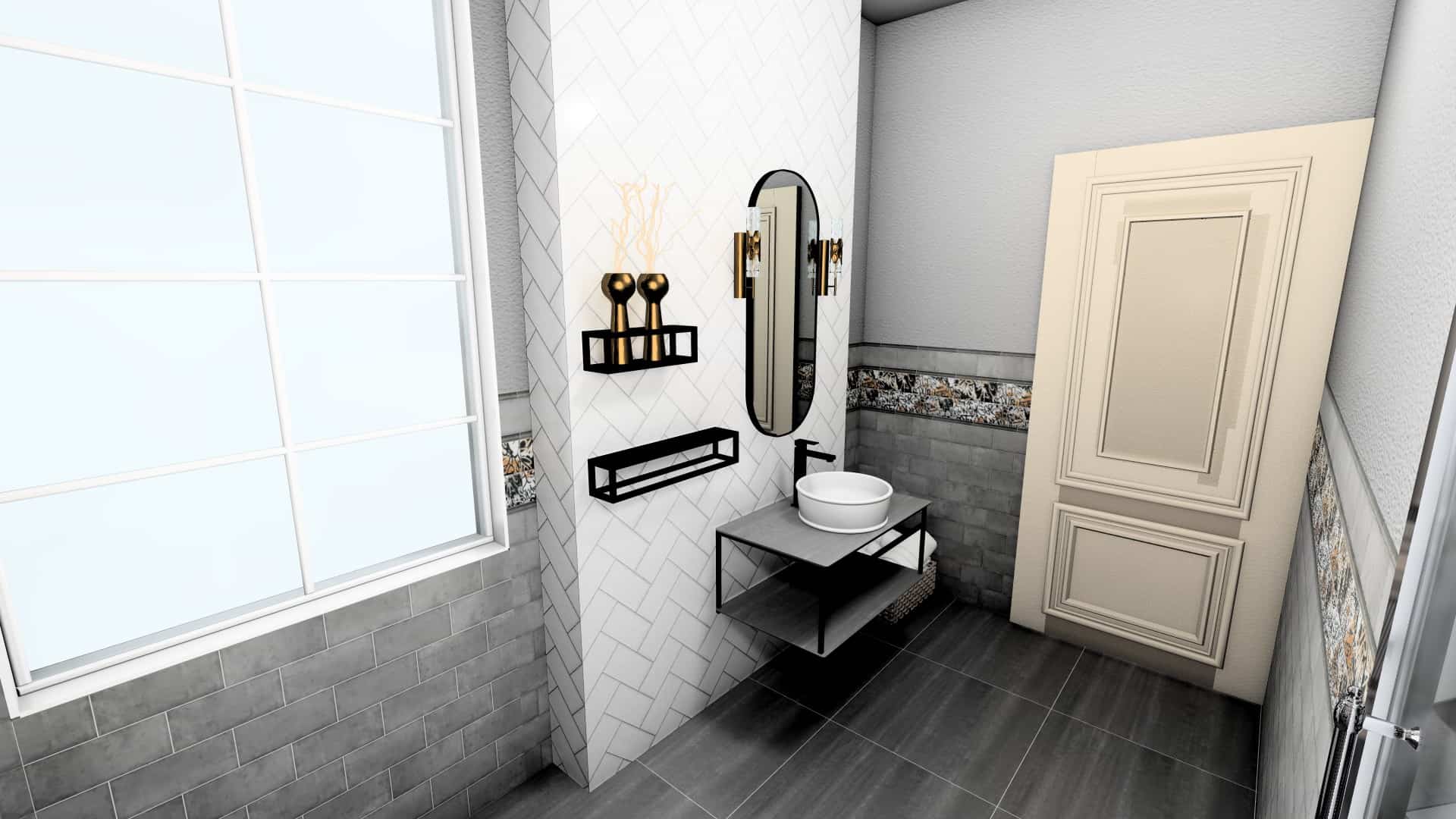 Дополняет общее настроение интерьера мебель и сантехника KERAMA MARAZZI. Черные металлические элементы серии PLAZA NEXT / ПЛАЗА НЕКСТ точно попадают в стиль лофт и гармонично перекликаются с плиткой.