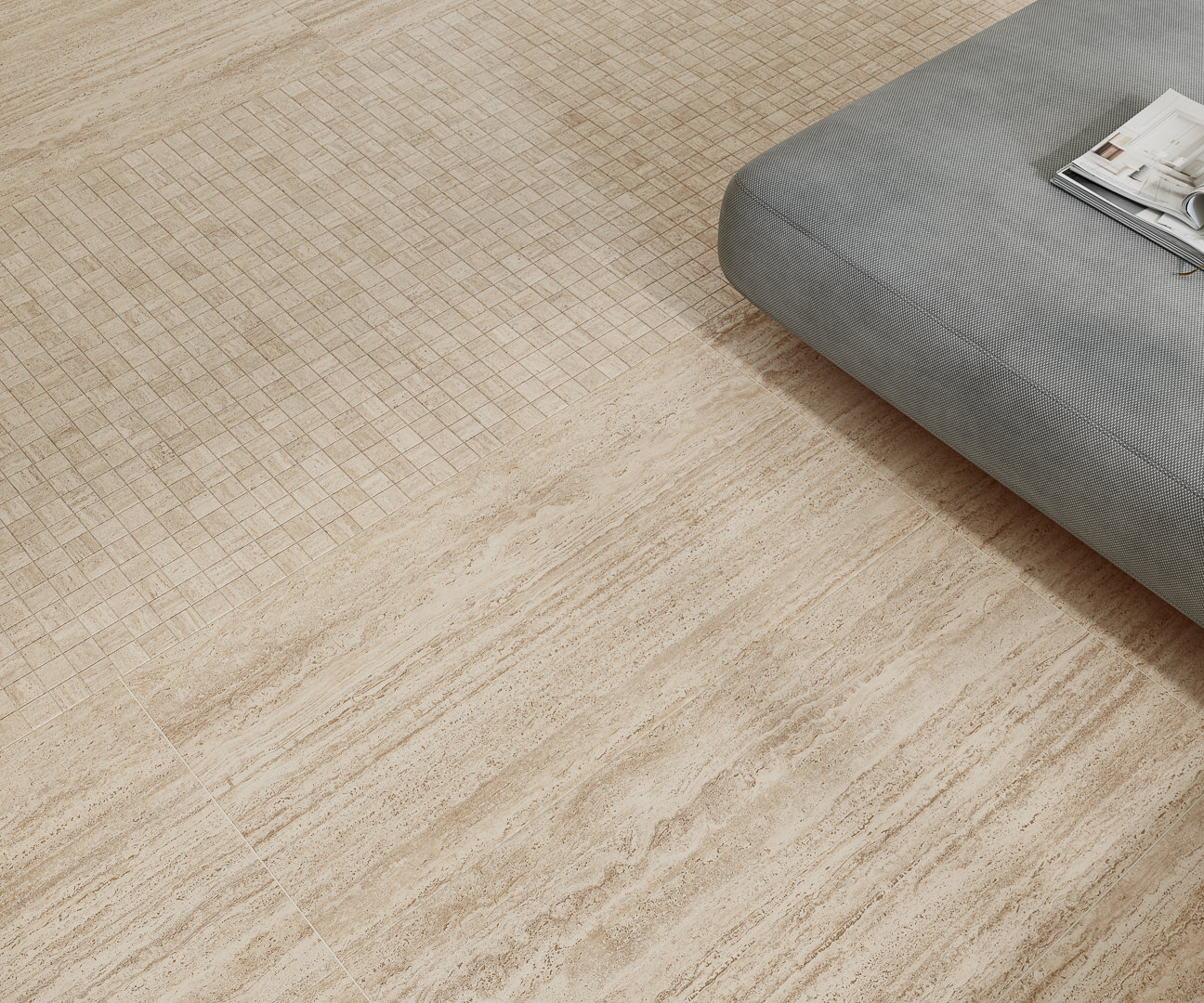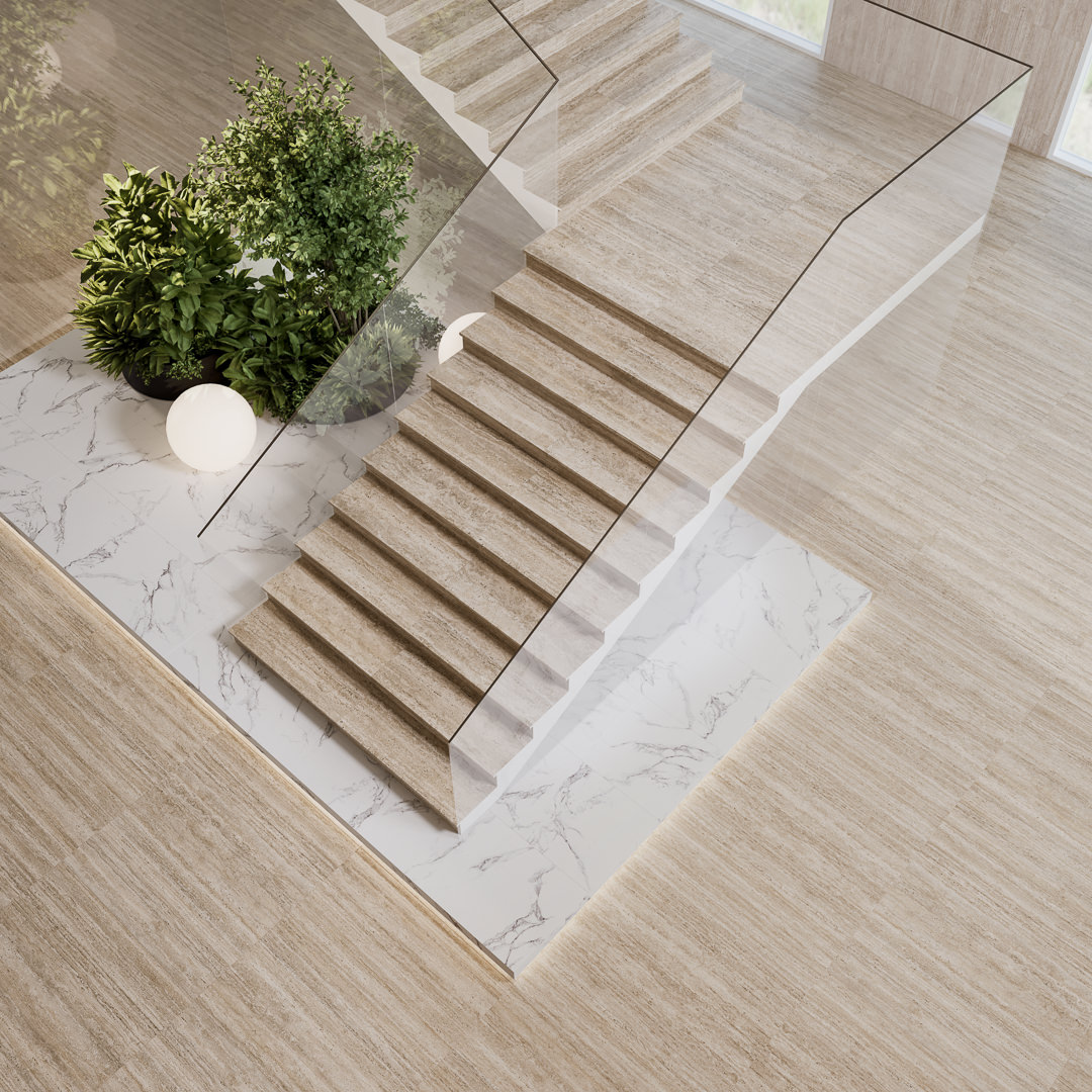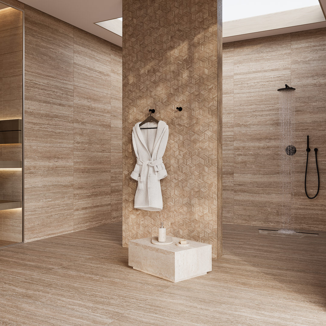 Серия вдохновлена классическим травертином: натуральный известняк бежево-песочных оттенков с мягкой пористой фактурой остаётся очень востребованным отделочным решением. Природный рисунок с эффектом естественной неоднородности создаёт ощущение материала, пропитанного щедрым южным солнцем.
