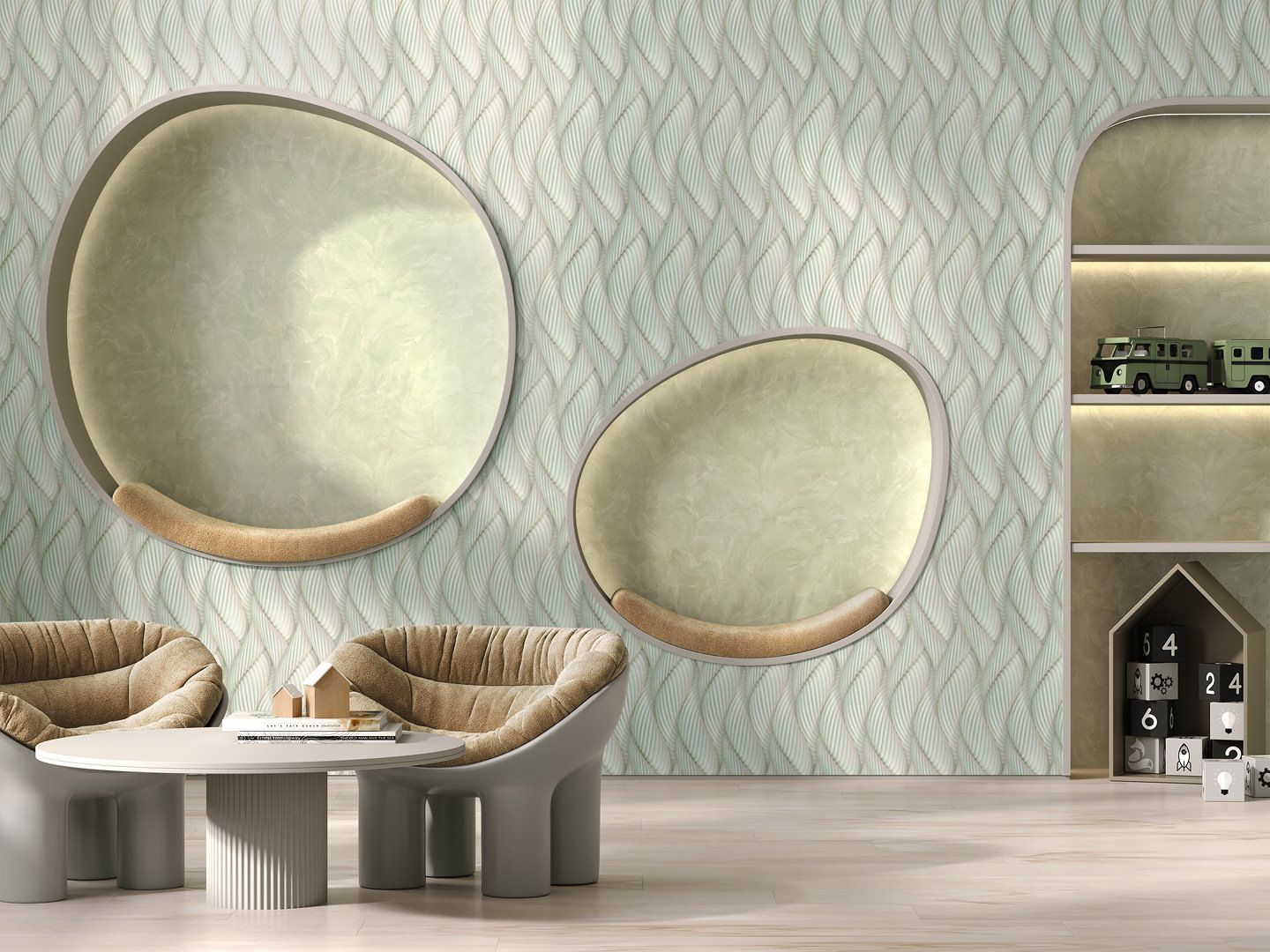Фактура ? При технологии горячего тиснения пластизоль особого качества наносится равномерным слоем на всю поверхность основы (флизелина) и застывает. Рельеф создается при помощи специальных тиснильных валов. | Рельефные |