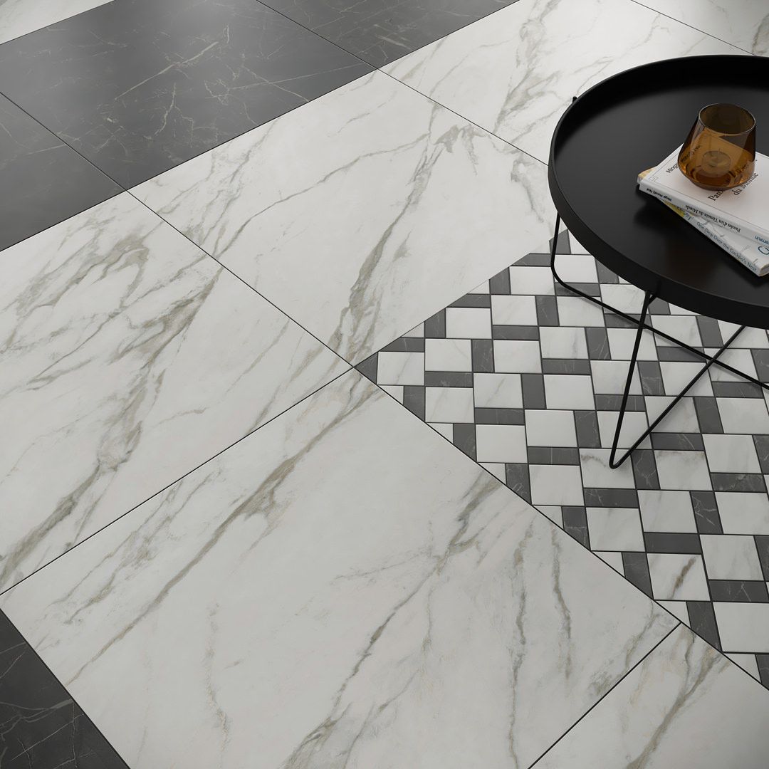 Керамогранит и керамическая плитка для пола имеют разные калибры. Для удобства укладки рекомендуем использовать продукцию одного калибра.